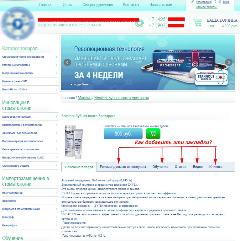 Oboroten Posted February 4, 2014 Share Posted February 4, 2014 Стандартный интернет магазин, а как добавить дополнительные пункты (закладки) к товару, чтобы добавить видео, рекомендованные аксесуары, описание клиник, которые продают и пр.? Link to comment Share on other sites More sharing options...