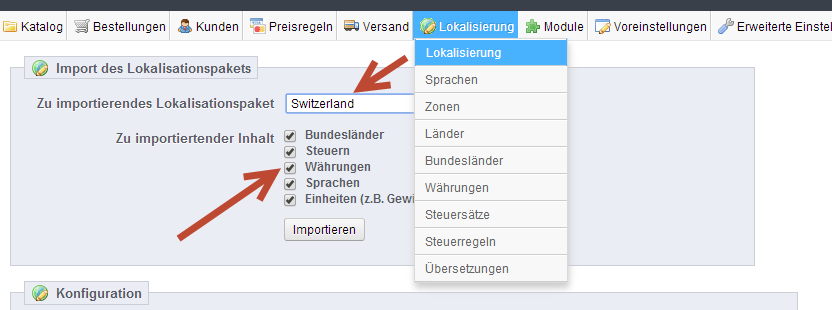 prestamax Posted February 5, 2014 Share Posted February 5, 2014 Du kannst die Schweizer Franken unter Lokalisierungen => Währungen anlegen. Anschließend kann sie dann bei Lokalisierung => Konfiguration als Standardwährung festgelegt werden. Link to comment Share on other sites More sharing options...