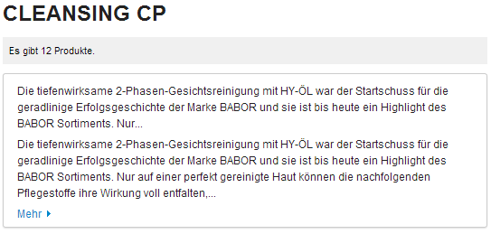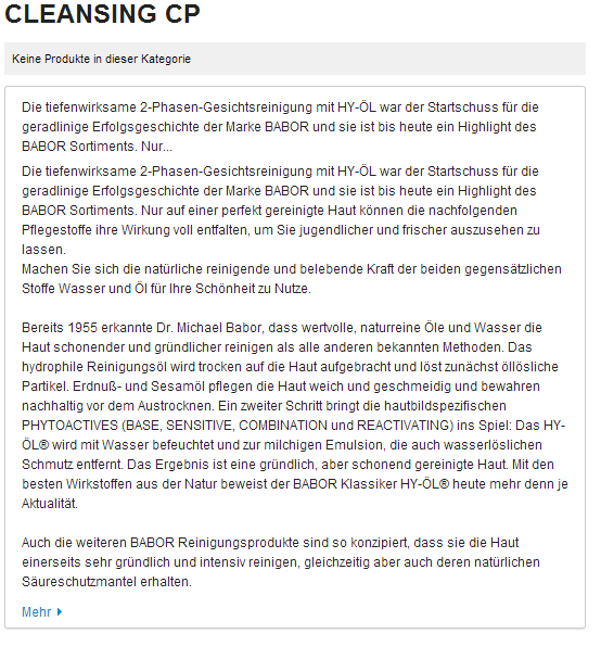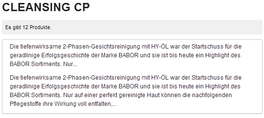calicosmeticshop Posted February 5, 2014 Share Posted February 5, 2014 (edited) Hallo Liebe Community, ich hoffe mir kann einer helfen. Mein Problem ist, dass in der Kategorieansicht die Beschreibung nicht gekürzt angezeigt wird. Auch die Suche im Forum brachte keine funktionierenden Lösungen. Beim Überprüfen der category.tpl ist mir kein Fehler aufgefallen. Aber vielleicht übersehe ich etwas oder es ist die falsche Datei, was ich aber bezweifle. Hier der Teil aus der category.tpl {if $category->description} <div class="cat_desc"> {if strlen($category->description) > 200} <p id="category_description_short">{$category->description|truncate:200}</p> <p id="category_description_full" style="display:none">{$category->description}</p> <a href="#" onclick="$('#category_description_short').hide(); $('#category_description_full').show(); $(this).hide(); return false;" class="lnk_more">{l s='More'}</a> {else} <p>{$category->description}</p> {/if} Und hier ein Screenshot der Beschreibung: Der Angezeigte Text ist bereits der komplette. Ich hoffe mir kann einer helfen. Mit freundlichen Grüßen Giuseppe Edited February 5, 2014 by calicosmeticshop (see edit history) Link to comment Share on other sites More sharing options...