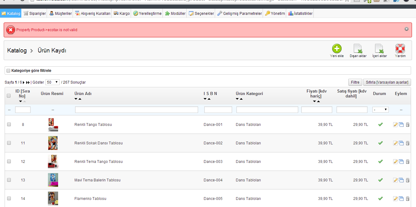 akintr Posted February 9, 2014 Share Posted February 9, 2014 Hello how i can solve Property Product->ecotax is not valid error. i try to increase product page but my prestashop gives error. i added page picture. thanks. Link to comment Share on other sites More sharing options...