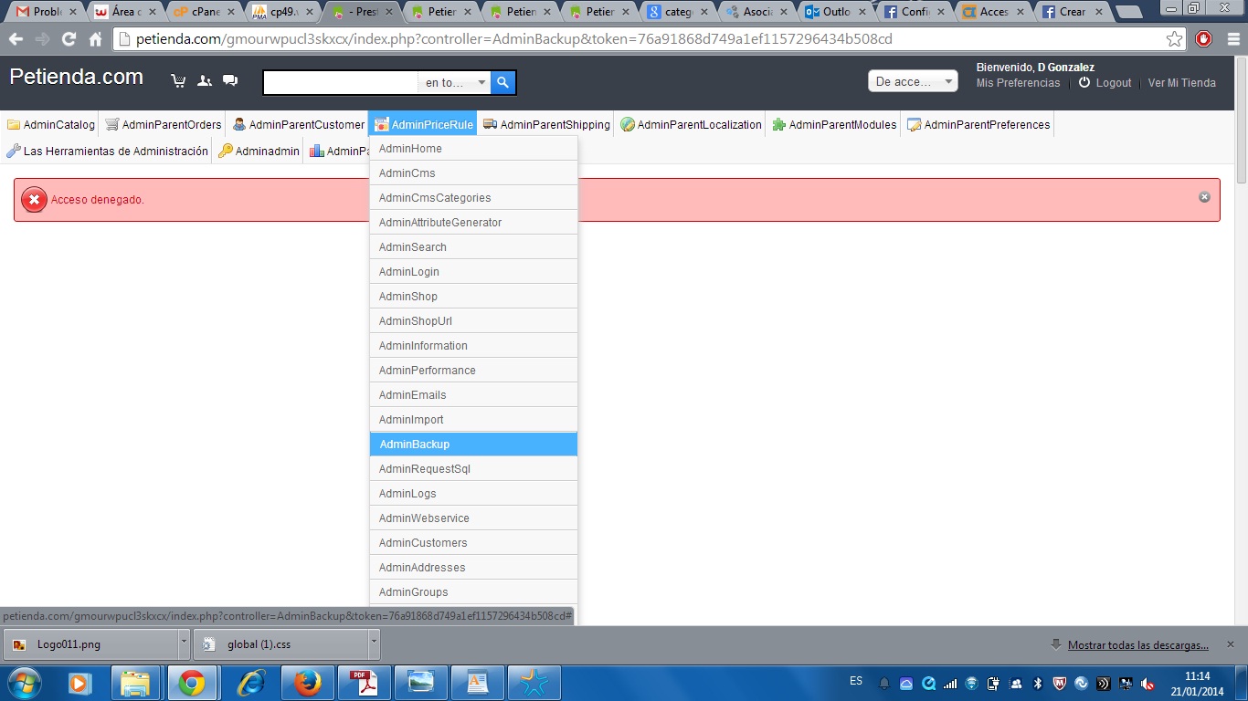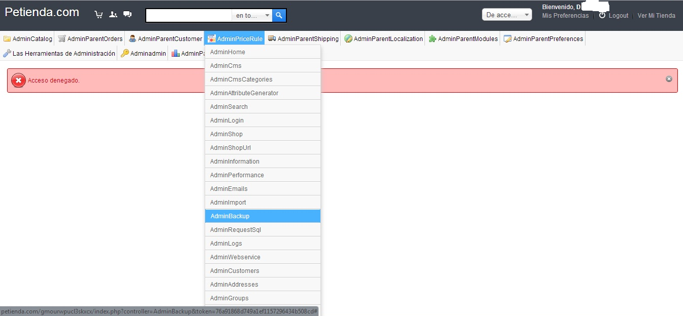 Buenos días, ante todo quiero dar las gracias por la colaboración que dais, ya que sin ella hay cosas que me habrían sido imposible poder solucionar. Tengo un problema no un archivo SQL, os comento, llevo dos meses ya con el mismo problema y no encuentro la solución por ningún lado, estoy montando mi tienda online, resulta que tenia que subir casi 4000 productos para vender, tras contactar con mi distribuidor me puso en contacto con una persona que es quien les hace la pagina web a ellos y da servicio a tiendas online, esta persona me paso un archivo SQL que es el que el utiliza para subir todo el catalogo, este archivo, rellena las tablas de prestashop y en cuestión de minutos tienes todo el catalogo cargado, el problema viene justo después de subir el archivo, me voy al panel de administración y me pone acceso denegado, y todos los menús del panel de repente están en ingles y tienen todos los menús desplegable las mismas opciones, cosa que tampoco sirve por que al pinchar en cualquiera de ellas, se queda tal y como esta, osea que no hace nada, sin embargo en la web aparecen todos los productos cargados, con sus correspondientes categorías y subcategorias. He hablado con el servicio técnico de dos hosting en los que he probado y ninguno me da una respuesta efectiva, de hecho las respuestas ni siquiera eran coherentes. He hablado, incluso hasta quedado en persona con el técnico que me paso el archivo SQL y el tampoco fue capaz de solucionarlo, de hecho lo probo y a el si le funciona, he de decir que tenemos contratado el host en la misma empresa, solo que el tiene un VPS y yo un hosting normal. Por ver si era el archivo o no, hice la prueba instalando prestashop en localhost y la verdad que funciono de maravilla, pero al hacerlo en el servidos no me funciona. Alguien me puede ayudar con esto por favor? Adjunto una captura de imagen para que veáis como se me queda el panel de administración. Gracias