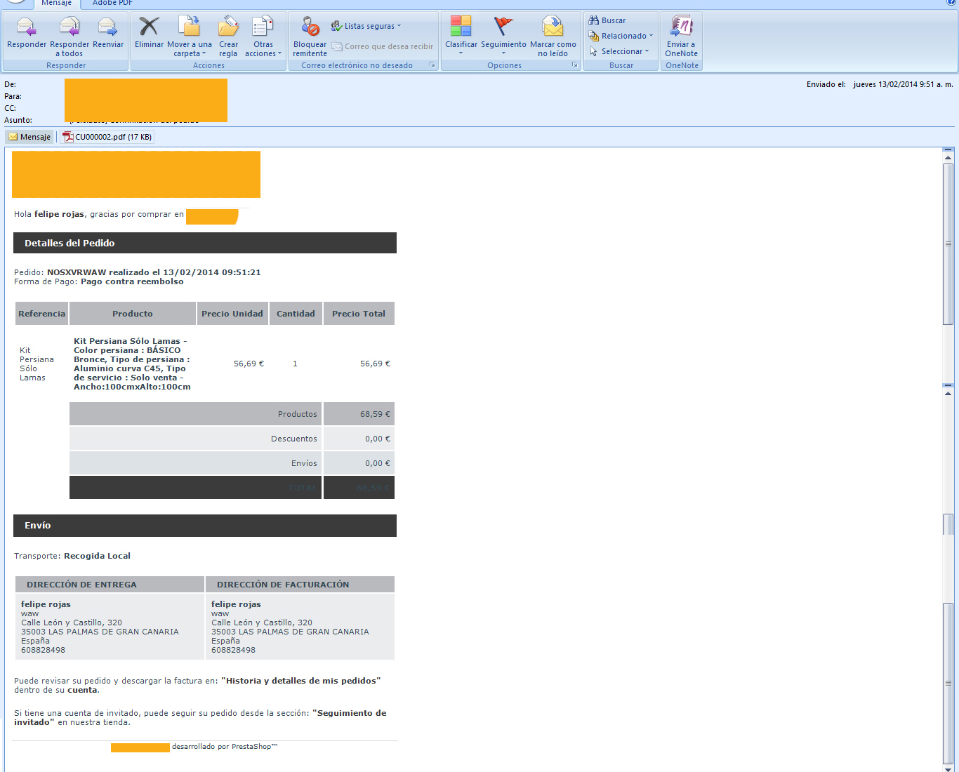 moraira Posted March 6, 2014 Share Posted March 6, 2014 Hola juanrojas, son dos correos diferentes, al cliente le llega el que hay en: TUTIENDA.ES/mails/IDIOMACLIENTE/order_conf.html y a ti te llegara el de mailalerts TUTIENDA.ES/modules/mailalerts/mail/IDIOMACLIENTE/new_order.html ojo al detalle que mail alerts usa el idioma del cliente y tiene 4 correos, tres para ti y uno para el, pero tampoco es un problemon. Revisa el correo de mailalerts, debes tener mal el fichero que te llega a ti, es decir el segundo Link to comment Share on other sites More sharing options...