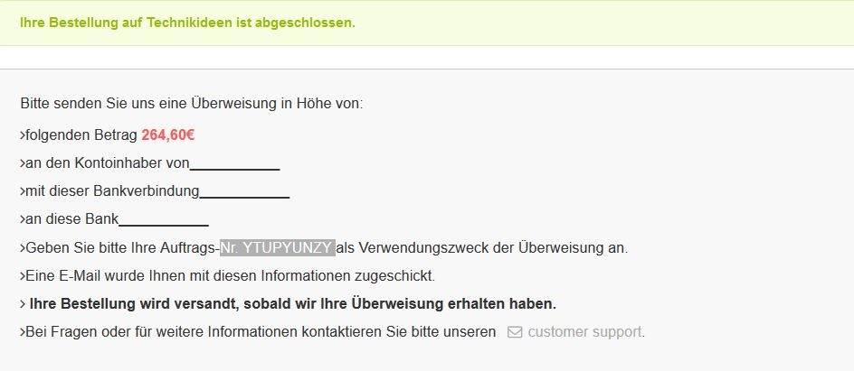 Ronny Lange Posted February 17, 2014 Share Posted February 17, 2014 Hallo, das mit der Email hat super geklappt, alles gefunden, vielen dank. Weiteres ist aber noch das Problem mit dem Text während der Bestellung. Wo kann ich diesen ändern? z.B. Bankdaten eingeben, Inhaber usw... Vielen Dank LG Christian ..... Du musst deine Bankdaten in dem Modul - Überweisung hinterlegen /eintragen. Auch die Kontaktdaten werden bei den Modulen eingetragen. Module; Block Kontakt, 2. Block Kontaktinformation und unter dem Bereich Zahlung, Banküberweisung Viel Glück Link to comment Share on other sites More sharing options...