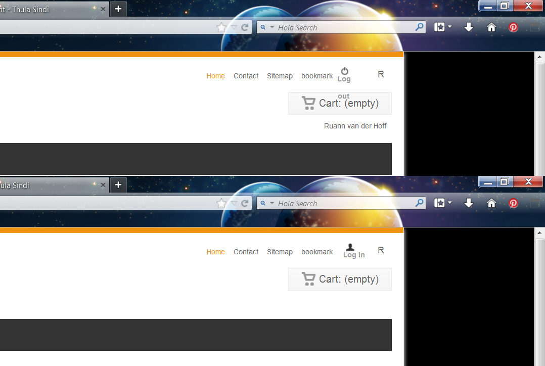 Ruann Posted March 3, 2014 Author Share Posted March 3, 2014 Hi, Thank you. I see that I had some errors on the code. It seems to look much beter now. The login is 100% right. It's just once I am logged in, the log out button the 'out' part overlaps the cart section. How do I move this up one line so it's one word? Example: Login and Logout. It also seems that the login is two words, I need to move the in so it reads: Login Please see attached sample. regards, Ruan Link to comment Share on other sites More sharing options...