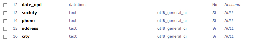 abacosrl Posted February 20, 2014 Share Posted February 20, 2014 (edited) Salve, io sto cercando di aggiungere dei campi alla form di contatto.Ho seguito questo articolo: http://nemops.com/adding-new-fields-to-prestashop-contact-form/ La form è cambiata ma i dati non vengono salvati nel Datbase e non vengono inviati via email. IO vorrei inserire i seguenti campi: society, phone, address, city.Scrivo di seguito le modiifche che ho apportato:Nel File conctact-form.tpl <p class="text"> <label for="society">{l s='Nome / Ragione Sociale'}</label> <input type="text" id="society" name="society" value="{if isset($smarty.post.society)}{$smarty.post.society|escape:'htmlall'|stripslashes}{/if}"/> </p> <p class="text"> <label for="phone">{l s='Telefono'}</label> <input type="text" id="phone" name="phone" value="{if isset($smarty.post.phone)}{$smarty.post.phone|escape:'htmlall'|stripslashes}{/if}" /> </p> <p class="text"> <label for="address">{l s='Indirizzo'}</label> <input type="text" id="address" name="address" value="{if isset($smarty.post.address)}{$smarty.post.address|escape:'htmlall'|stripslashes}{/if}" /> <label for="city">{l s='Città'}</label> <input type="text" id="city" name="city" value="{if isset($smarty.post.city)}{$smarty.post.city|escape:'htmlall'|stripslashes}{/if}" /> </p> ho creato il file: override/classes/CustomerThread.php <?php class CustomerThread extends CustomerThreadCore { public $society; public $phone; public $address; public $city; public static $definition = array( 'table' => 'customer_thread', 'primary' => 'id_customer_thread', 'fields' => array( 'id_lang' => array('type' => self::TYPE_INT, 'validate' => 'isUnsignedId', 'required' => true), 'id_contact' => array('type' => self::TYPE_INT, 'validate' => 'isUnsignedId', 'required' => true), 'id_shop' => array('type' => self::TYPE_INT, 'validate' => 'isUnsignedId'), 'id_customer' =>array('type' => self::TYPE_INT, 'validate' => 'isUnsignedId'), 'id_order' => array('type' => self::TYPE_INT, 'validate' => 'isUnsignedId'), 'id_product' => array('type' => self::TYPE_INT, 'validate' => 'isUnsignedId'), 'email' => array('type' => self::TYPE_STRING, 'validate' => 'isEmail', 'size' => 254), 'token' => array('type' => self::TYPE_STRING, 'validate' => 'isGenericName', 'required' => true), 'status' => array('type' => self::TYPE_STRING), 'date_add' => array('type' => self::TYPE_DATE, 'validate' => 'isDate'), 'date_upd' => array('type' => self::TYPE_DATE, 'validate' => 'isDate'), 'society' => array('type' => self::TYPE_STRING, 'validate' => 'isGenericName'), 'phone' => array('type' => self::TYPE_STRING, 'validate' => 'isGenericName'), 'address' => array('type' => self::TYPE_STRING, 'validate' => 'isGenericName'), 'city' => array('type' => self::TYPE_STRING, 'validate' => 'isGenericName') ), ); } ho modiifcato nel file: override/controllers/front/ContactConroller.php if (!($from = trim(Tools::getValue('from'))) || !Validate::isEmail($from)) $this->errors[] = Tools::displayError('Invalid email address.'); elseif (!($society = nl2br2(Tools::getValue('society')))) $this->errors[] = Tools::displayError('The name cannot be blank.'); elseif (!($phone = nl2br2(Tools::getValue('phone')))) $this->errors[] = Tools::displayError('The phone cannot be blank.'); elseif (!($address = nl2br2(Tools::getValue('address')))) $this->errors[] = Tools::displayError('The address cannot be blank.'); elseif (!($city = nl2br2(Tools::getValue('city')))) $this->errors[] = Tools::displayError('The city cannot be blank.'); else if (!$message) $this->errors[] = Tools::displayError('The message cannot be blank.'); if ($contact->customer_service) { if ((int)$id_customer_thread) { $ct = new CustomerThread($id_customer_thread); $ct->status = 'open'; $ct->id_lang = (int)$this->context->language->id; $ct->id_contact = (int)($id_contact); if ($id_order = (int)Tools::getValue('id_order')) $ct->id_order = $id_order; if ($id_product = (int)Tools::getValue('id_product')) $ct->id_product = $id_product; $ct->society = Tools::getValue('society'); $ct->phone = Tools::getValue('phone'); $ct->address = Tools::getValue('address'); $ct->city = Tools::getValue('city'); $ct->update(); } else { $ct = new CustomerThread(); if (isset($customer->id)) $ct->id_customer = (int)($customer->id); $ct->id_shop = (int)$this->context->shop->id; if ($id_order = (int)Tools::getValue('id_order')) $ct->id_order = $id_order; if ($id_product = (int)Tools::getValue('id_product')) $ct->id_product = $id_product; $ct->id_contact = (int)($id_contact); $ct->id_lang = (int)$this->context->language->id; $ct->email = $from; $ct->status = 'open'; $ct->token = Tools::passwdGen(12); $ct->society = Tools::getValue('society'); $ct->phone = Tools::getValue('phone'); $ct->address = Tools::getValue('address'); $ct->city = Tools::getValue('city'); $ct->add(); } if (!count($this->errors)) { $var_list = array( '{order_name}' => '-', '{attached_file}' => '-', '{message}' => Tools::nl2br(stripslashes($message)), '{email}' => $from, '{product_name}' => '', '{society}' => (isset($ct) && $ct->society) ? $ct->society : '', '{phone}' => (isset($ct) && $ct->phone) ? $ct->phone : '', '{address}' => (isset($ct) && $ct->address) ? $ct->address : '', '{city}' => (isset($ct) && $ct->city) ? $ct->city : '' ); Ho aggiunto le righe nella tabella come da immagine allegata e inserito nelle mail i campi... Qualcuno saprebbe aiutarmi per poter alemno inviare i dati inseriti nella form via email? Attualmente nell'email dove dovrebbe essere passati i valori mi rimangono così:Nome / Ragione Sociale: {society}Grazie mille Edited February 20, 2014 by abacosrl (see edit history) Link to comment Share on other sites More sharing options...