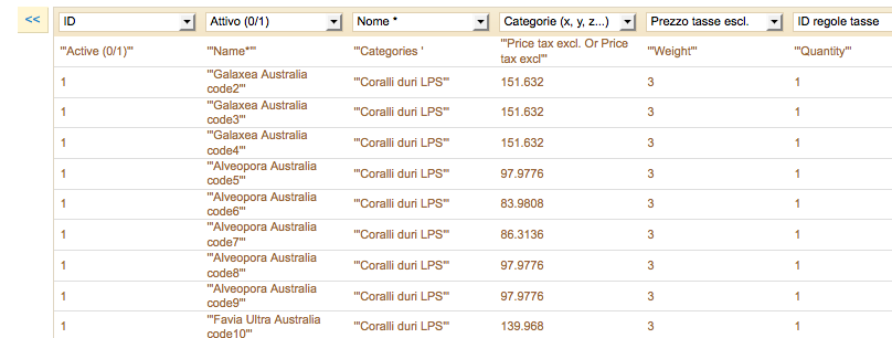 33nummelin Posted February 21, 2014 Share Posted February 21, 2014 (edited) Ciao a tutti, ho un problema. Fino all altro giorno creavo i miei file CSV di importazione per prodotti con foto ect senza nessun problema. oggi volevo importare un altro file CSV e mi e comparso questo strano problema: creo il mio file CSV e lo importo fin qui tutto ok. quando clicco su passaggio successivo visualizzo tutte le colonne nome, categoria ect....... il problema é che vi sono delle virgolette tra tutti i nomi, questo fa si che il sistema non riconosce correttamente le categorie dove andrebbero inseriti i prodotti ed in realta mi crea delle nuve categorie con virgolette, chiaramente anche i link alle immagini non funzionano in quanto il sistena li riconsce con virgolettei e mi crea un gran casino.... qualcuno sa dirmi come agire posto un paio di foto grazie mille Edited February 21, 2014 by 33nummelin (see edit history) Link to comment Share on other sites More sharing options...