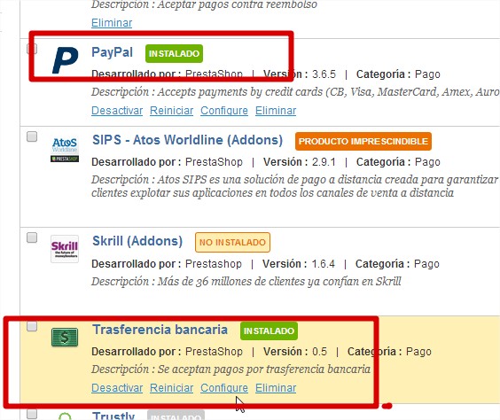 JavierP Posted February 22, 2014 Share Posted February 22, 2014 (edited) SEgun la url que nos as dado, utilizas prestashop, 1.4 y segun las capturas 1.5 ? El opcion de pagar por transferencia te a funcionado alguna vez? O solo paypal? As reiniciado el modulo, por si las moscas? Salu2 Edited February 22, 2014 by JavierP (see edit history) Link to comment Share on other sites More sharing options...