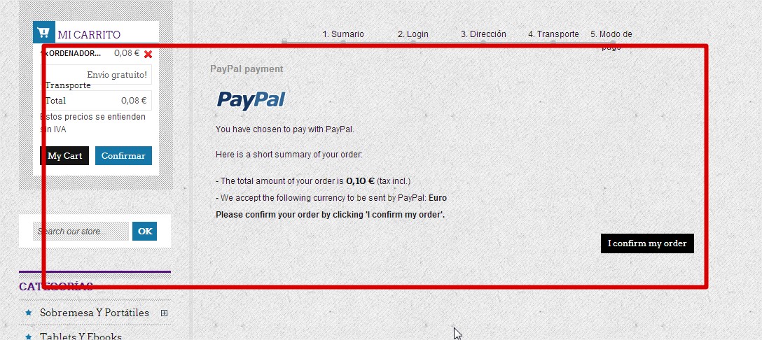 MiguelFT Posted February 22, 2014 Share Posted February 22, 2014 Hola, En la tienda PcXIP .ES cuando activo trasnferencia bancaria se activa OK y se ve bien pero en cuanto activo el modulo de PayPal ya me salta directamente para pagar en PayPal: Con PayPal y Transferencia activa: Solo con la transferencia activa: ¿Podéis ayudarme? Gracias! Link to comment Share on other sites More sharing options...
