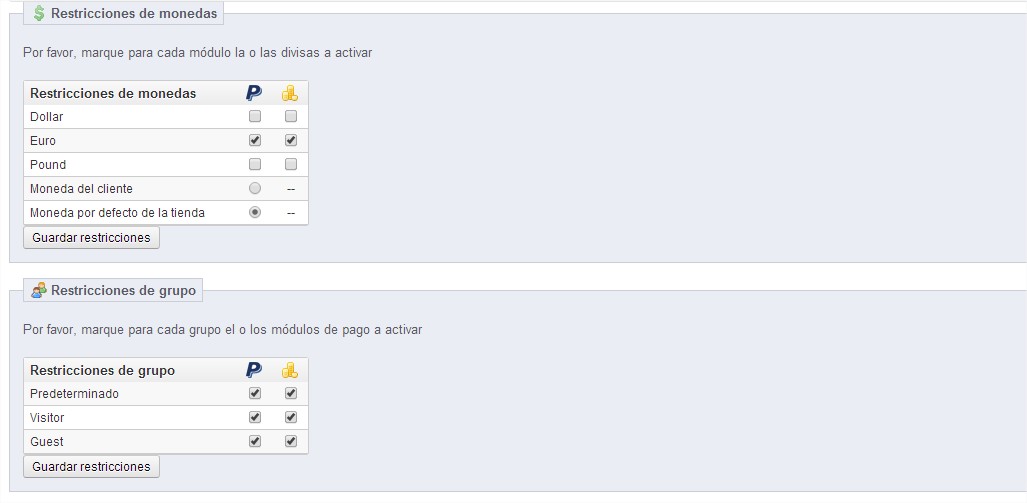 JavierP Posted February 22, 2014 Share Posted February 22, 2014 Buenas noches MguelFT, as mirado en Modulos > Modos de Pago y Restrinciones haber si te desactiva un modulo al otro al activarlo? Adjuntanos una captura con los 2 modulos activados. Salu2 Link to comment Share on other sites More sharing options...