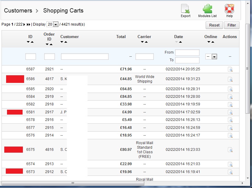 Ray UK Posted February 22, 2014 Share Posted February 22, 2014 (edited) Hi, Im thinking our shopping carts list is a bit messed up. All of the abandoned carts cannot be deleted ? Plus they all have an ID and order ID. In this image there are only 4 orders, yet they all have order ID's ? Plus if I click on any of the none orders, they each link to orders that were placed months ago ? Is there something wrong here and what can I do to resolve this. Is it a case of delete all previous order history and start again ? Edited February 25, 2014 by MerseyRay (see edit history) Link to comment Share on other sites More sharing options...