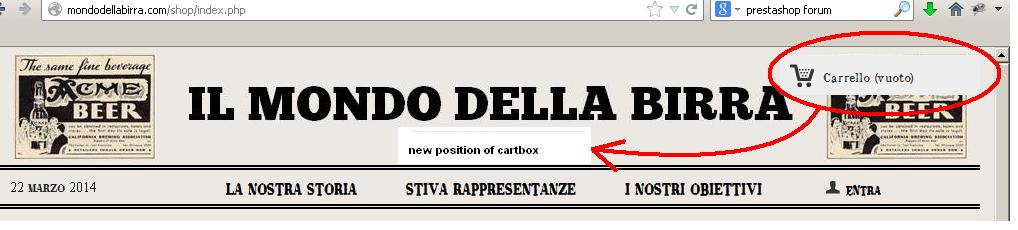 Enoteca Posted April 2, 2014 Author Share Posted April 2, 2014 this topic has been of no use. Now I wish to have things at least reverted as they were but cannot see the cart block inside the header. Here I go again: codewise, cartblock is inside both DisplayHeader and DisplayTop, but layoutwise it is 148px below its original position, i.e. the position from where the mousehover effect showing what's inside the cart begins. Please browse www.mondodellabirra.com, try to add procucts and see the problem. Come on, let's close this topic once for all. Link to comment Share on other sites More sharing options...