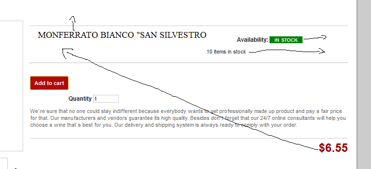d.crysty23 Posted February 24, 2014 Share Posted February 24, 2014 I have a problem with arranging some elements in the product page. It's about the first line in the title, I want to move it higher, above the line. I've modified this class and added margin-top: -20 and the problem is fixed but I know from experience that it's not a good idea to use negative values. Can I solve this in a different manner? Secondly, I'd like the price to be on the same line as "Availability" and "items in stock", on the left. I've tried to make some changes here, but with no success I've attached a printscreen and the link to the site in order to explain my problem better http://www.3bwine.com/CRISTY/prestashop/index.php?id_product=1&controller=product Link to comment Share on other sites More sharing options...