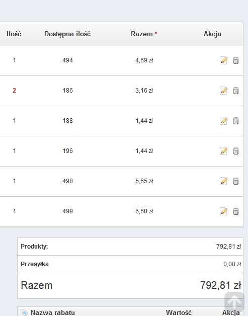 Klient wybiera produkty, dodaje je do koszyka i realizuje zamówienie. W zamówieniu jednak pojawia się tylko kilka produktów (w koszyku kilkanaście) a suma zamówienia nie zgadza się z koszykiem klienta.