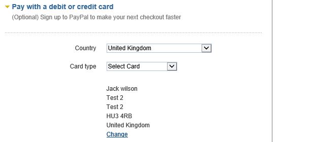 wilson113311 Posted March 2, 2014 Author Share Posted March 2, 2014 Hi, I have attached you some screen shots of the process I take, to show you what I mean about the delivery address. I hope this helps and I am allowing my customers to process orders without having a PayPal account I think I am going to have to set up another method of payment to get around this problem. Link to comment Share on other sites More sharing options...