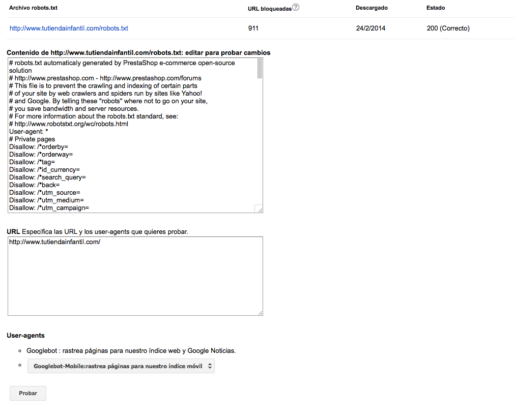 El Lince Posted February 25, 2014 Share Posted February 25, 2014 buenas a todos. Después de montar mi web con PS 6.5.4.1 e indexarla en google, el robots.txt me tiene bloqueada 911 URL y ni tengo idea de qué tengo que hacer para poder indexarlas. Mi web se llama www.tutiendainfantil.com y cuando pongo en google "tu tienda infantil" ni siquiera aparece, lo cual no creo que sea muy buena señal. Alguien me puede echar un vistazo para ver que errores tiene mi web y como podría mejorarla? gracias a todos por ayudar a gente que no es informática como yo a poder construir la web de nuestro negocio. Link to comment Share on other sites More sharing options...