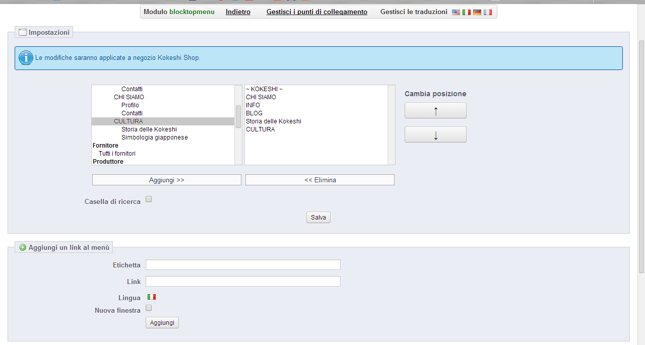 Configurando il modulo top menu io posso aggiungere al menu sia le categorie che le sottocategorie (oltre che un link ex novo).