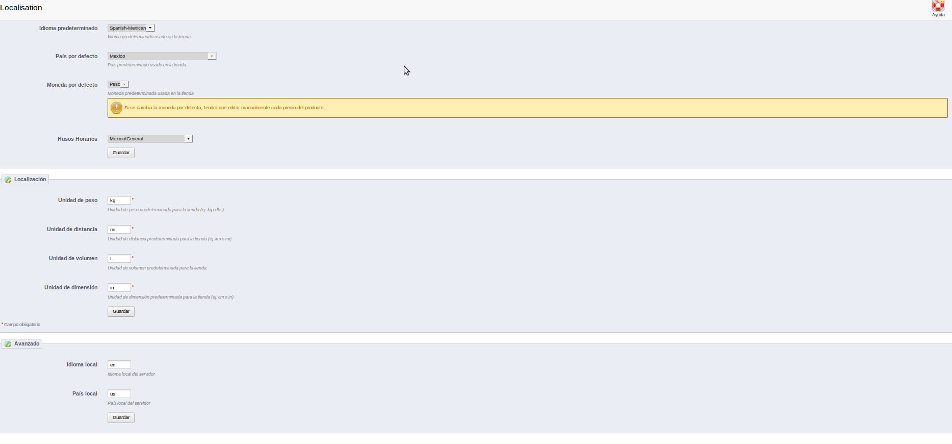 Beowuldgo Posted February 28, 2014 Author Share Posted February 28, 2014 En la ruta que te he dicho en mi primer mensaje. Países PrestaShop™.png muchas gracias tenia usa seleccionado.. escogi .. mexico y ya salio... solo que me cambio el tipo de cambio... .y agarro el valor del dolar.. pero puse al tipo de cambio a $1 No se si sea correcto.... Link to comment Share on other sites More sharing options...