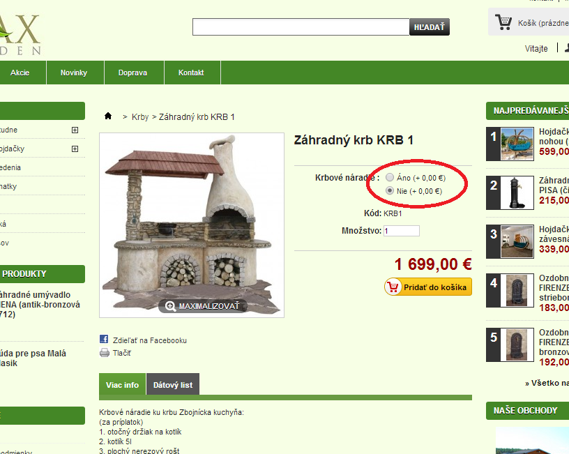 Tomi326 Posted March 2, 2014 Author Share Posted March 2, 2014 Van egy (több) termék, amit lehet más-más színben, méretben választani. Meg szeretném jeleníteni a plusz költségeket minden választási lehetőség mellett. Pl. ezt a kerti grillezőt meg lehet vásárolni kiegészítőkkel is, tehát a kiegészítők többletárát kellene megjeleníteni. Link to comment Share on other sites More sharing options...