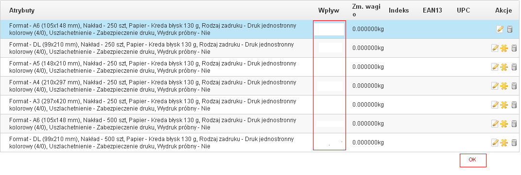 drucker Posted March 4, 2014 Share Posted March 4, 2014 (edited) Mam problem z atrybutami produktów w moim sklepie. Moduł działa, ale nie do końca tak jakbym chciał. Będę używał u siebie ok 6~7 atrybutów, które są zależne od siebie i każdy może mieć na siebie różny wpływ (tzn. wpływ atrybutu A na atrybut B, przy różnych wartościach jest różny) a nie jak jest teraz, że każdy atrybut zmienia cenę o jakąś wartość. Żeby było łatwiej zrozumieć o co mi chodzi, napiszę przykład dla sklepu drukarni. Mamy ulotkę o rozmiarze A6, która możemy wydrukować w różnym nakładzie np. 250 szt, 500 szt. itd. Do tego może dojść 3,4,5 atrybut, który ma różny wpływ na cenę przy każdym z nakładów (nie jest to stała wartość). Jak to rozwiązać. Czy da się jakoś zrobić to na podstawie np tabeli, gdzie sam bym mógł ustalić cenę dla każdej z kombinacji i wszystkie je zatwierdził jednym kliknięciem. Screen poniżej. Tzn tworze normalnie kombinacje atrybutów wpisuje ręcznie ceny dla każdej z kombinacji i klikam OK? Edited March 4, 2014 by drucker (see edit history) Link to comment Share on other sites More sharing options...
