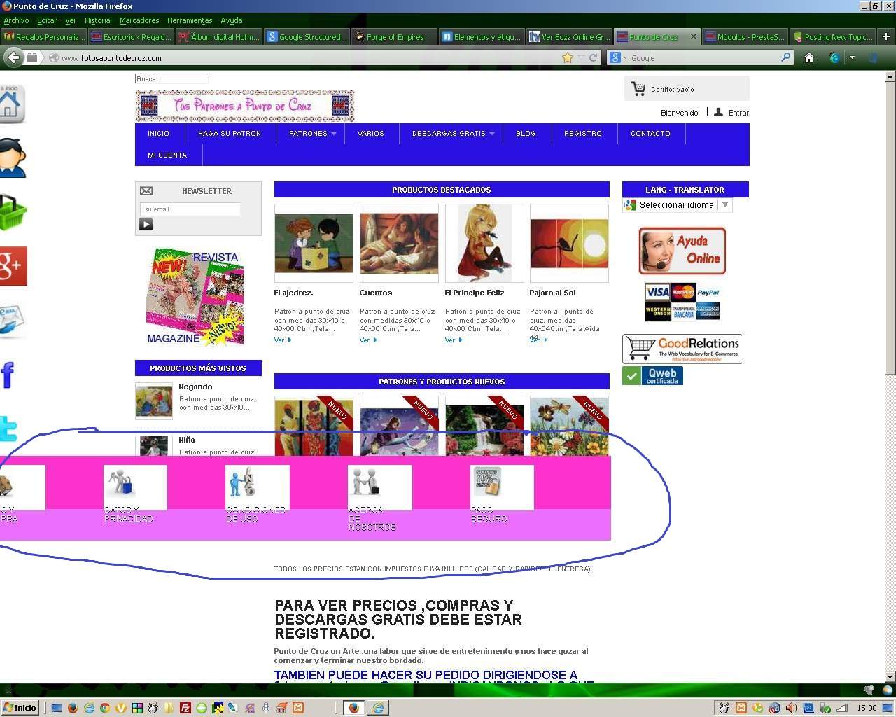 jjryeste Posted March 4, 2014 Share Posted March 4, 2014 (edited) Hola amigos, por qu emotivo , se ha desplazado el modulo reaseguros en mi pagina, antes esaba correcto , debajo del todo y bien encuadrado y sin es e borde debako de rosa mas suave, mi pagina http://www.fotosapuntodecruz.com/ puee deberse a algun modulo instalado o es otra cosa, saludos , gracias, adjunto imagen Edited March 4, 2014 by jjromeroy (see edit history) Link to comment Share on other sites More sharing options...