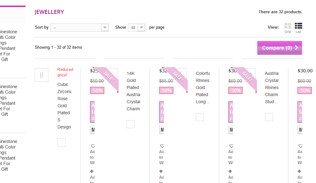auther Posted March 10, 2014 Author Share Posted March 10, 2014 due to the fact that this is non-default theme, please show contents of product-list.tpl file (it's necessary to modify this file probably) Hello Vekia, Following are the contents of the file [themes/theme758/product-list.tpl] ----------------------------------------------------- {if isset($products)} <!-- Products list --> {assign var='nbItemsPerLine' value=3} {assign var='nbLi' value=$products|@count} {math equation="nbLi/nbItemsPerLine" nbLi=$nbLi nbItemsPerLine=$nbItemsPerLine assign=nbLines} <ul id="product_list" class="grid row"> {foreach from=$products item=product name=products} {math equation="(total%perLine)" total=$smarty.foreach.products.total perLine=$nbItemsPerLine assign=totModulo} {if $totModulo == 0}{assign var='totModulo' value=$nbItemsPerLine}{/if} <li class="ajax_block_product span3 num-{$smarty.foreach.products.iteration}{if $smarty.foreach.products.iteration%$nbItemsPerLine == 0} omega{elseif $smarty.foreach.products.iteration%$nbItemsPerLine == 1} alpha{/if} {if $smarty.foreach.products.iteration > ($smarty.foreach.products.total - $totModulo)}last_line{/if}"> <a href="{$product.link|escape:'htmlall':'UTF-8'}" class="product_img_link" title="{$product.name|escape:'htmlall':'UTF-8'}"> <img src="{$link->getImageLink($product.link_rewrite, $product.id_image, 'home_default')}" alt="{$product.legend|escape:'htmlall':'UTF-8'}" /> </a> <div class="center_block"> <div class="product_flags clearfix"> {if isset($product.new) && $product.new == 1}<span class="new title_shop">{l s='New'}!</span>{/if} {if (!$PS_CATALOG_MODE AND ((isset($product.show_price) && $product.show_price) || (isset($product.available_for_order) && $product.available_for_order)))} {if isset($product.available_for_order) && $product.available_for_order && !isset($restricted_country_mode)} <span class="availability title_shop">{if ($product.allow_oosp || $product.quantity > 0)}{l s='Available'} {elseif (isset($product.quantity_all_versions) && $product.quantity_all_versions > 0)}{l s='Product available with different options'}{else}{l s='Out of stock'}{/if}</span>{/if} {if isset($product.online_only) && $product.online_only}<span class="online_only title_shop">{l s='Online only'}</span>{/if} {/if} </div> <div class="clear"></div> <h5><a class="product_link" href="{$product.link|escape:'htmlall':'UTF-8'}" title="{$product.name|escape:'htmlall':'UTF-8'}">{$product.name|escape:'htmlall':'UTF-8'|truncate:35:'...'}</a></h5> <p class="product_desc">{$product.description_short|strip_tags:'UTF-8'|truncate:450:'...'}</p> <p class="product_desc mob">{$product.description_short|strip_tags:'UTF-8'|truncate:90:'...'}</p> <p class="product_desc mob2">{$product.description_short|strip_tags:'UTF-8'|truncate:180:'...'}</p> </div> <div class="right_block"> {if isset($product.on_sale) && $product.on_sale && isset($product.show_price) && $product.show_price && !$PS_CATALOG_MODE}<span class="on_sale title_shop">{l s='On sale!'}</span> {elseif isset($product.reduction) && $product.reduction && isset($product.show_price) && $product.show_price && !$PS_CATALOG_MODE}<span class="discount title_shop">{l s='Reduced price!'}</span>{/if} {if (!$PS_CATALOG_MODE AND ((isset($product.show_price) && $product.show_price) || (isset($product.available_for_order) && $product.available_for_order)))} {if isset($product.show_price) && $product.show_price && !isset($restricted_country_mode)} <span class="price">{if !$priceDisplay}{convertPrice price=$product.price}{else}{convertPrice price=$product.price_tax_exc}{/if}</span>{/if} {*Thuy them o day*} {if $product.specific_prices AND !$PS_CATALOG_MODE}<span class="price-old">{displayWtPrice p=$product.price_without_reduction}</span>{/if} {/if} {if isset($comparator_max_item) && $comparator_max_item && !isset($instant_search)} <p class="compare checkbox choices-thin clearfix"> <input type="checkbox" class="comparator" id="comparator_item_{$product.id_product}" value="comparator_item_{$product.id_product}" {if isset($compareProducts) && in_array($product.id_product, $compareProducts)}checked="checked"{/if} /> <label for="comparator_item_{$product.id_product}">{l s='Select to compare'}</label></p> {/if} <div class="clear noneclass"></div> {if ($product.id_product_attribute == 0 || (isset($add_prod_display) && ($add_prod_display == 1))) && $product.available_for_order && !isset($restricted_country_mode) && $product.minimal_quantity <= 1 && $product.customizable != 2 && !$PS_CATALOG_MODE} {if ($product.allow_oosp || $product.quantity > 0)} {if isset($static_token)} <a class="ajax_add_to_cart_button exclusive btn_add_cart" rel="ajax_id_product_{$product.id_product|intval}" href="{$link->getPageLink('cart',false, NULL, "add&id_product={$product.id_product|intval}&token={$static_token}", false)}" title="{l s='Add to cart'}"> <span>{l s='Add to cart'}</span> </a> {else} <a class="ajax_add_to_cart_button exclusive btn_add_cart" rel="ajax_id_product_{$product.id_product|intval}" href="{$link->getPageLink('cart',false, NULL, "add&id_product={$product.id_product|intval}", false)} title="{l s='Add to cart'}"> <span>{l s='Add to cart'}</span> </a> {/if} {else} <span class="exclusive">{l s='Add to cart'}</span> {/if} {/if} <a class="button" href="{$product.link|escape:'htmlall':'UTF-8'}" title="{l s='View'}">{l s='View'}</a> </div> </li> {/foreach} <script> (function($) { $(function() { function createCookie(name,value,days) { if (days) { var date = new Date(); date.setTime(date.getTime()+(days*24*60*60*1000)); var expires = "; expires="+date.toGMTString(); } else var expires = ""; document.cookie = name+"="+value+expires+"; path=/"; } function readCookie(name) { var nameEQ = name + "="; var ca = document.cookie.split(';'); for(var i=0;i < ca.length;i++) { var c = ca; while (c.charAt(0)==' ') c = c.substring(1,c.length); if (c.indexOf(nameEQ) == 0) return c.substring(nameEQ.length,c.length); } return null; } function eraseCookie(name) { createCookie(n
