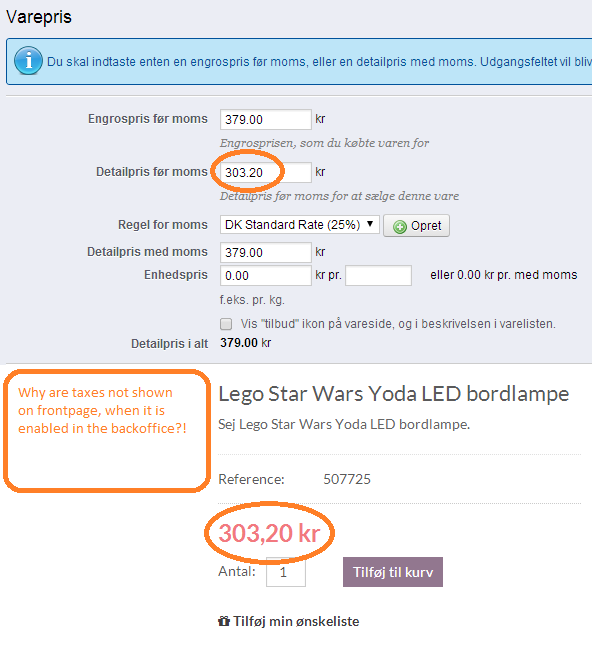 explodedk Posted March 12, 2014 Share Posted March 12, 2014 (edited) Hi - i am about to pull my hair out here . I can't figure out why taxes is not shown in the frontoffice when i enable em on a product in the backoffice. -- fixed - enabled tax for each customer group Edited March 16, 2014 by explodedk (see edit history) Link to comment Share on other sites More sharing options...