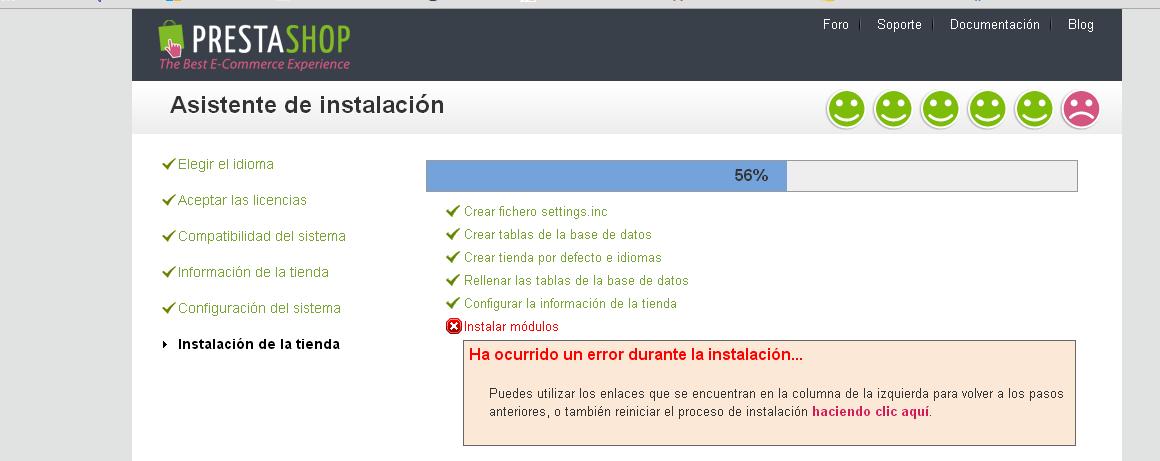 lmsalazar Posted March 12, 2014 Share Posted March 12, 2014 Que tal. Tengo el siguiente problema al instalar Prestashop en el servidor. Primero arroja un error diciendo que no puede instalar el idioma español, pero al reiniciar la instalación se corrige. Posteriormente, arroja el error al instalar módulos, reinicio la instalación pero vuelve a salir el error. Estoy subiendo la imagen de la pantalla donde aparece el error. Ya lo instalé en mi computadora con un servidor virtual (WAMP) y se instaló correctamente, pero cuando lo quiero subir al servidor de mi proveedor, aparece este error. Alguna sugerencia? Link to comment Share on other sites More sharing options...