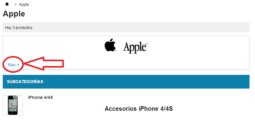 altenife Posted March 14, 2014 Author Share Posted March 14, 2014 Vale a ver si me podeis ayudar... en el archivo category.tpl de mi plantilla tengo esto. {if $category->description} <div class="cat_desc"> {if strlen($category->description) > 120} <div id="category_description_short">{$description_short}</div> <div id="category_description_full" style="display:none;">{$category->description}</div> <a href="#" onclick="$('#category_description_short').hide(); $('#category_description_full').show(); $(this).hide(); return false;" class="lnk_more">{l s='More'}</a> {else} <div>{$category->description}</div> Y en el archivo category.css tengo esto: .cat_desc p {padding:0 10px 5px 10px} .cat_desc .lnk_more { padding:0 10px; color:#0088CC; background:url(../img/arrow_right_1.png) no-repeat 100% 4px transparent; } Que tengo que modificar? gracias!!! Link to comment Share on other sites More sharing options...