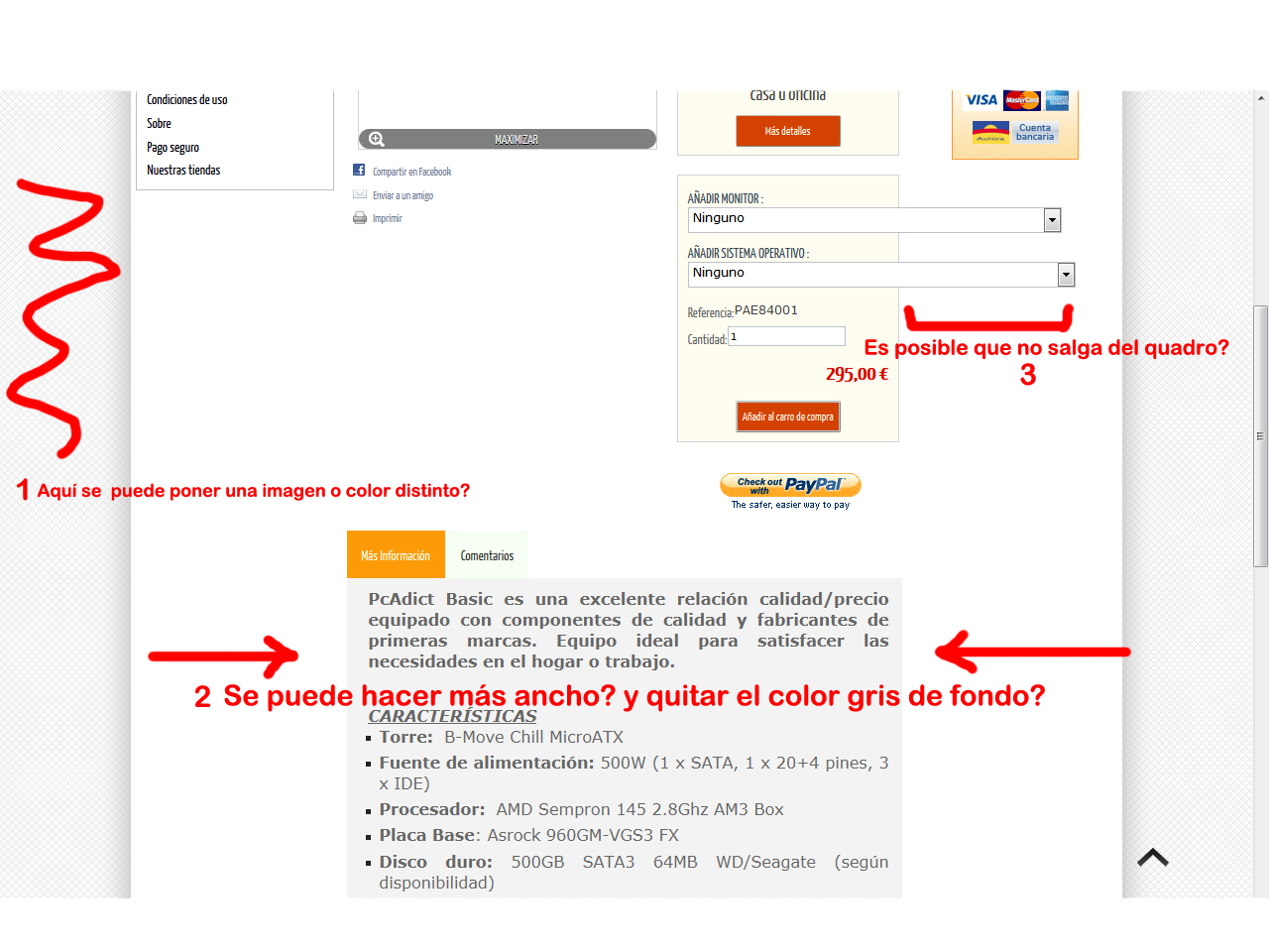 Paula Martinez Posted March 18, 2014 Share Posted March 18, 2014 Seria importante que proporcionalas la dirección de tu web, para ver el asunto desde firebug: http://www.prestashop.com/forums/topic/209203-uso-basico-de-firebug/ Ademas de indicar plantilla y version de Prestashop que usas. Pero por ejemplo, en la plantilla por defecto, el ancho (width) de los desplegables de las combinaciones, lo cambias en el: /themes/plantilla/css/product.css Aqui: #attributes select { width: 120px; border: 1px solid #cdcdcd; } Link to comment Share on other sites More sharing options...