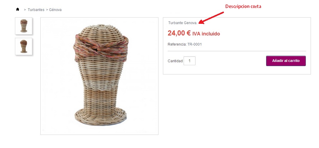 Paula Martinez Posted March 18, 2014 Share Posted March 18, 2014 Por ejemplo: Eliminar descripción corta: Archivo: /themes/simpleresponsivetheme/product.tpl Buscar: {if $product->description_short} <div id="short_description_content" class="rte align_justify" itemprop="description">{$product->description_short}</div> {/if} y comentar el codigo: {* {if $product->description_short} <div id="short_description_content" class="rte align_justify" itemprop="description">{$product->description_short}</div> {/if} *} --- En tu plantilla, por ejemplo el titulo del producto, se imprime aquí: <div id="product-information"> <h1 id="product-title" itemprop="name">{$product->name|escape:'htmlall':'UTF-8'}</h1> </div> Link to comment Share on other sites More sharing options...