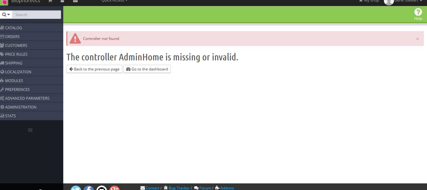 Dashboad not loading for PS 1.6 The controller AdminHome is missing or invalid.