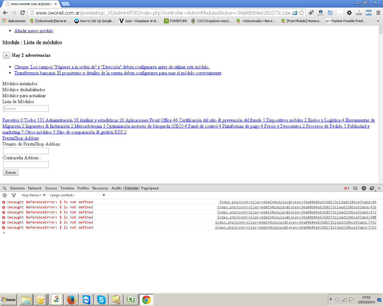 Uncaught ReferenceError: $ is not defined index.php?controller=AdminModules&token=34a88b84e6260273c1dad2186ce93abd:89