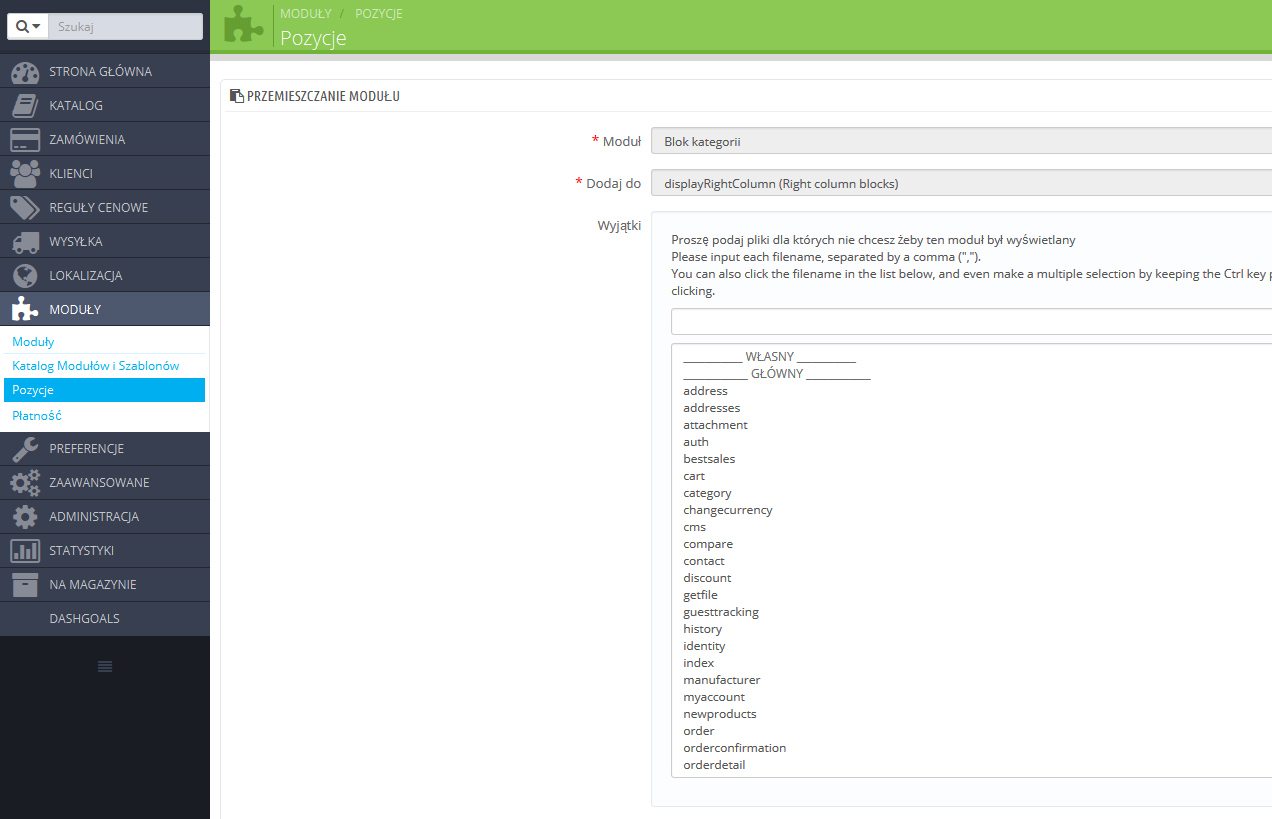 Dodam jeszcze fakt, że w ustawieniach pozycji modułu np. kategorii mam ustawione żeby wszędzie się wyświetlało (tzn. żadna z opcji w liście nie jest zaznaczona).