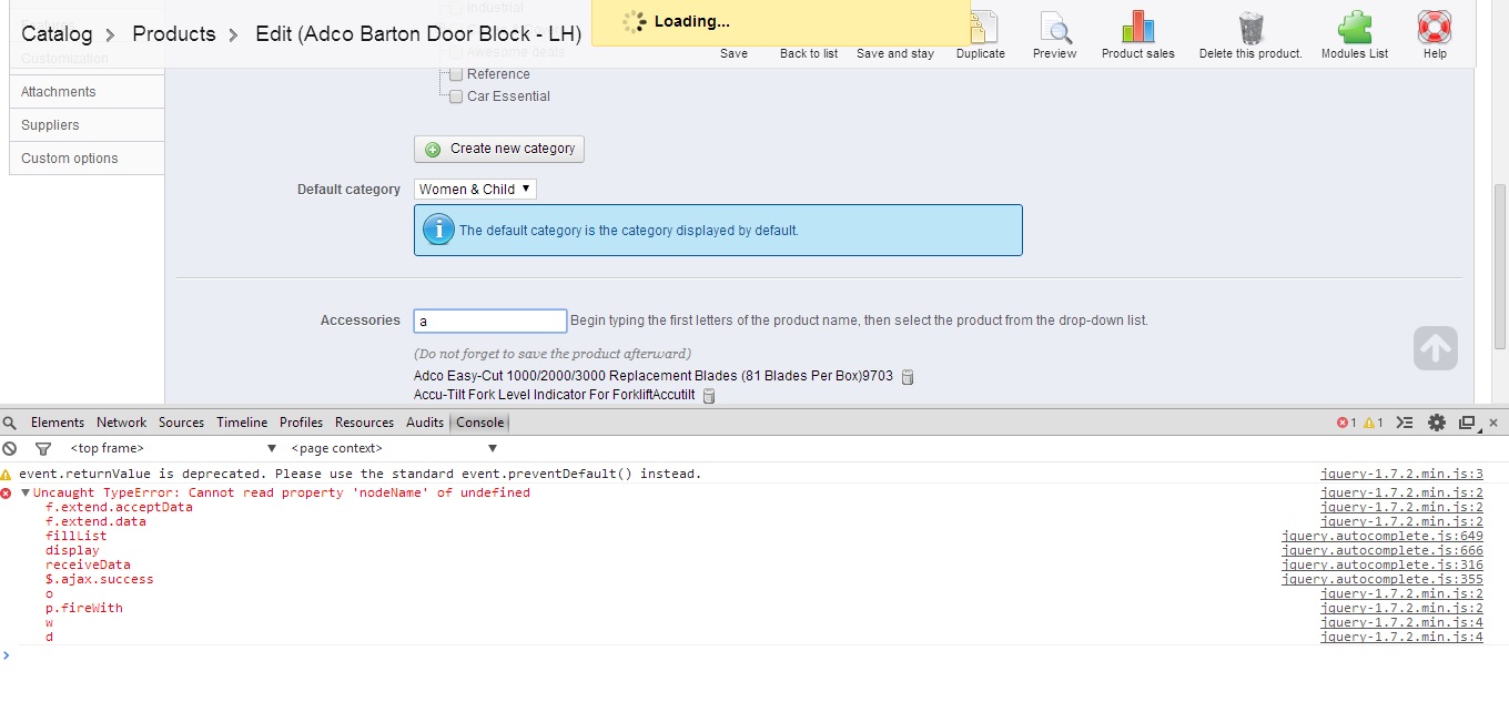 rohi222 Posted April 1, 2014 Author Share Posted April 1, 2014 I have already sent you the username and password you can login. Go to the product then associations and then put anything in accessories it will keep loading.... Link to comment Share on other sites More sharing options...