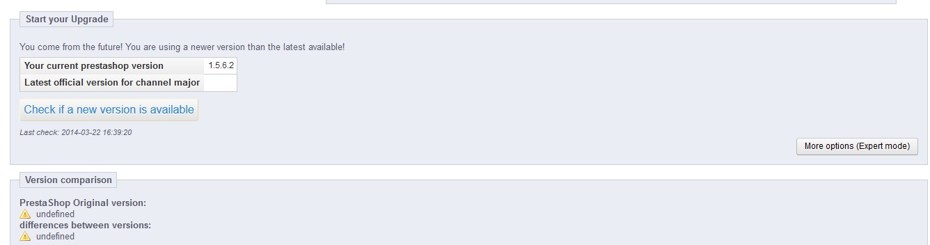 cashsonu Posted March 22, 2014 Share Posted March 22, 2014 I upgraded to 1.6 with one click upgrade but now cant see my website its down. below admin panel i see PrestaShop™ 1.5.6.2 . I dont know whats causing it. please help me my site is down. www.chiclingerie.com.np Link to comment Share on other sites More sharing options...
