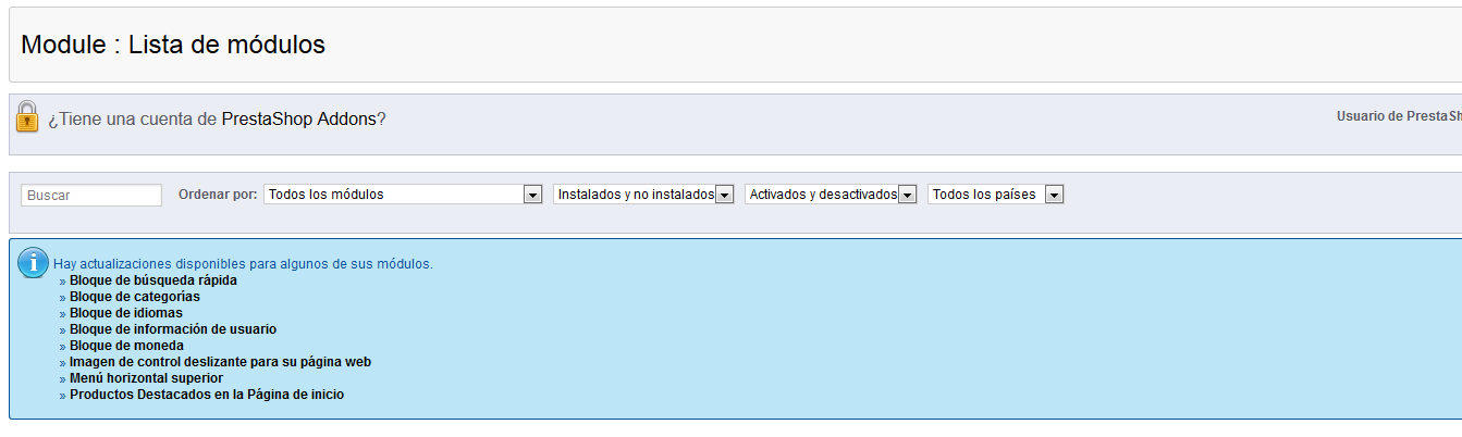 bluecarbon Posted March 23, 2014 Author Share Posted March 23, 2014 Por ahora espera, y no los actualices hasta nuevo aviso porque le esta petando a todo el mundo, si has actualizado algun modulo y ha petado la tienda, bajate tu version de Prestashop que supongo que es la 1.5.X (http://www.prestashop.com/es/versiones-para-programadores (al final tienes todas las versiones de prestashop) y copia los modulos originales que hayas actualizado, para salir del paso, mientras prestashop dice algo. Mas info aquí: http://www.prestashop.com/forums/topic/317315-updated-new-modules-updates-22-03-2014-for-15-are-broken/ (Es un post para estar atentos por el momento, mientas pestashop dice algo) Ok, Gracias Link to comment Share on other sites More sharing options...
