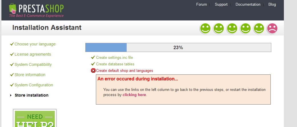 ufukengin Posted March 26, 2014 Share Posted March 26, 2014 I cannot install the Prestashop 1.6.0.5, it gives error on 23%. Create default shop and languages An error occured during installation...You can use the links on the left column to go back to the previous steps, or restart the installation process by clicking here. What can be the reason for this error? Link to comment Share on other sites More sharing options...