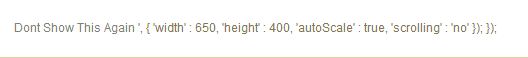 endriu107 Posted July 12, 2014 Share Posted July 12, 2014 (edited) Above footer is display some code: Dont Show This Again ', { 'width' : 650, 'height' : 400, 'autoScale' : true, 'scrolling' : 'no' }); }); and popup didnt appear. Edited July 12, 2014 by endriu107 (see edit history) Link to comment Share on other sites More sharing options...