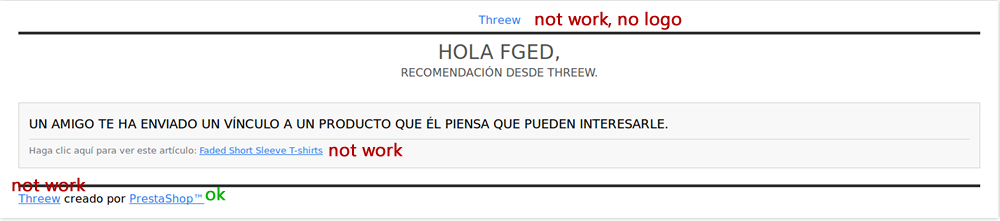 Nando112 Posted March 29, 2014 Share Posted March 29, 2014 (edited) Hi, I got problems with the urls sent from my shop. SendToAfriend, new account, coments urls dont work, only works Prestashop link from the footer. Other thing is email Logo doesnt visible on the header. I show a capture. Can anybody help me? Thanks. Edited March 29, 2014 by Nando112 (see edit history) Link to comment Share on other sites More sharing options...