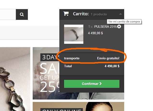 nadie Posted March 31, 2014 Share Posted March 31, 2014 Si te refieres a cambiar la palabra "Envio Gratuito" del modulo que muestras en la pantalla en el carrito de la cabecera, lo puedes cambiar desde traducciones de los modulos, en la pestaña Localización -> Traducciones -> Modificar Traducciones -> Traducciones de los modulos -> Desplegar traducciones -> Ctrl+F, buscar palabra y cambiar.¿O te refieres a la configuración de los gastos de envío en cuestion: http://victor-rodenas.com/2013/07/31/guia-configurar-gastos-de-envio-en-prestashop-1-5/ ? Link to comment Share on other sites More sharing options...