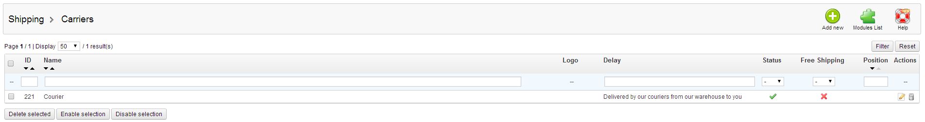 clint Posted April 2, 2014 Author Share Posted April 2, 2014 Hi, I've recently encountered a problem. I tried to add a carrier and it failed 3 times. It has now added the carrier onto the product page but it isn't displayed on the carriers page. I have attached screenshots of this. Does anyone know how I remove them? Managed to sort this. In ps_carriers they all had a value of 0 for deleted. I changed this to 1 and voila.... They disappeared Hope this is the "Proper way" Link to comment Share on other sites More sharing options...