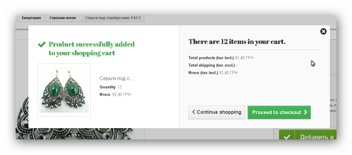 [email protected] Posted April 3, 2014 Share Posted April 3, 2014 Добрый день. Подскажите пожалуйста, как убрать всплывающее окно при добавлении товара в корзину,но что бы не отключать Ajax скрипт в корзине. Буду очень благодарен. Еще буду очень благодарен если скажите, как вернуть что бы товар взлетал в корзину как было в престашоп 1.5. Link to comment Share on other sites More sharing options...