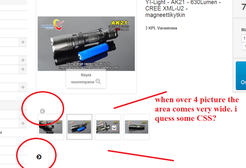 Valoilmio Posted April 3, 2014 Share Posted April 3, 2014 when having more than 4 pictures -> the product image list comes very odd. cannot find the CSS place where to modify and make this better looking. please see picture. Link to comment Share on other sites More sharing options...