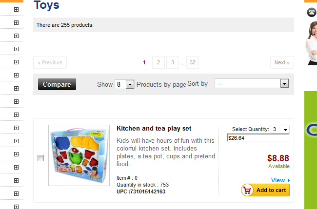 PrabuSS Posted April 5, 2014 Share Posted April 5, 2014 I would like to remove Quantity in stock option for particular category(Toys) products in my prestashop 1.5 store. Here i guessed i need to edit productlist.tpl file for some filter code. Please any provide the suggestion would be better. http://wholesale-genie.com/index.php?id_category=229&controller=category Link to comment Share on other sites More sharing options...