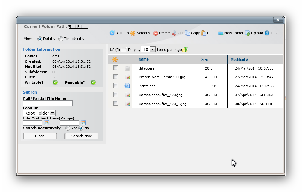 Mir ist hier wohl aufgefallen, dass unter "current folder path" "Root Folder" steht, doch habe ich das als "Rootfolder der Moduls" aufgefasst, weil (per FTP) im Rootfolder nichts Derartiges zu finden ist. Zudem steht ja darunter in der Box "Folder: cms"