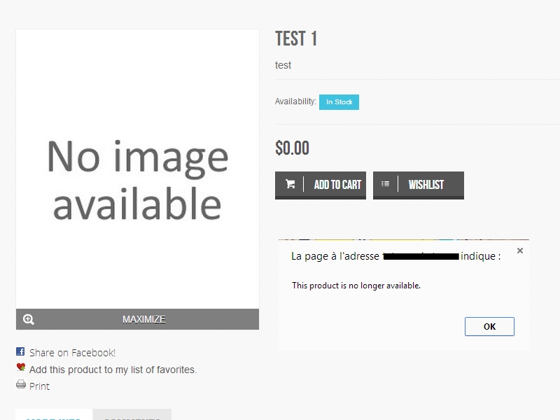 Super citron Posted April 7, 2014 Author Share Posted April 7, 2014 Basically our product is located in a categorie.. Let's say : Home -> Category -> Product1 When we try to add to cart the product inside the category..so from Home-> Category, it works, but when we try to add to cart the product from the product page (details of the product), it says "This product is no longer available". So we were thinking : Maybe there is a problem with the "Add to cart"... Also it works from the mobile version of the website..from category and product page.. How can we check if there is a problem with the "add to cart"? Where is it located? Thank you Link to comment Share on other sites More sharing options...