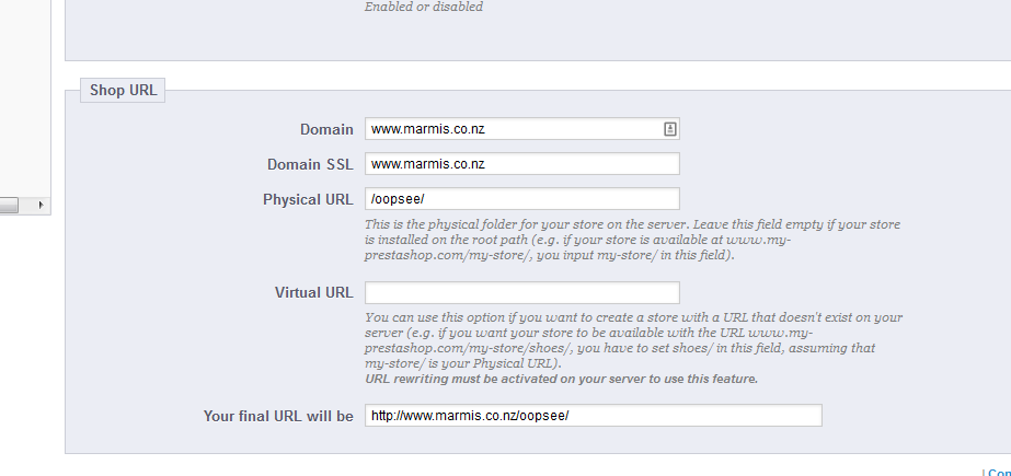 MarMis Posted April 7, 2014 Share Posted April 7, 2014 I know that a lot is written about urls and multistore. So I have done a lot of reading but....ending up crying that I can't get it work. First some basics: Main webshop: www.oopsee.co.nz Like to add another webshop: www.marmis.co.nz Both are 2 seperate websites but are hosted by 1 main domain: www.marmis.net So the problem here is that if I follow the instructions from prestashop and I park "www.marmis.co.nz". All will be going back to www.marmis.net So how can I get it to be pointed to www.oopsee.co.nz I have tried several options, but probably I am doing something wrong as I can't get it working What do I need to do at my hosting company or....do I need to something completely different (and go to my domain registrar) ? and what do I need to fill in prestashop url - multishop (as shown attached) Thanks for your help Link to comment Share on other sites More sharing options...