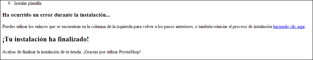 Este es lo que muestra la pagina luego de la instalacion fallida