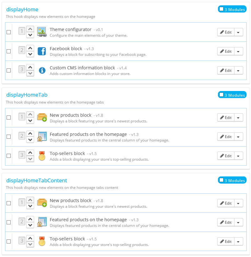 razorloves Posted April 25, 2014 Share Posted April 25, 2014 (edited) I have this showing twice in my home page. But I checked Admin > Modules > Positions: displayHome - here I see "Featured Products in the Homepage" only once as it should be. Note: I upgraded from 1.5.6.2 to 1.6.0.6 might want to check the settings in the back office in Preferences - Themes, then click on the edit button for your theme. When i upgraded to 1.6 i had the same problem you describe and i had to uncheck the box for "Home". If you're using the default prestashop theme, it should look like this... Edited April 25, 2014 by razorloves (see edit history) Link to comment Share on other sites More sharing options...