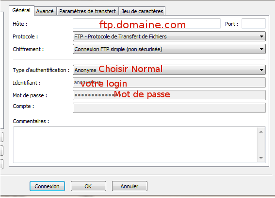 Oron Posted April 9, 2014 Share Posted April 9, 2014 Je n'ai pas compris ce qu'il faut mettre dans le champ "site distant" quand vous arrivez sur le FTP avec votre logiciel filezilla ou autre vous avez en général un dossier /www/, il est aussi possible que vous y arrivez directement. Il peut être nomme /www/ ou /web/ ou /publlic_html/ ou autre selon les systèmes. Donc si vous arrivez avant ce /www/ vous pouvez mettre dans Site distant le /www/ Link to comment Share on other sites More sharing options...